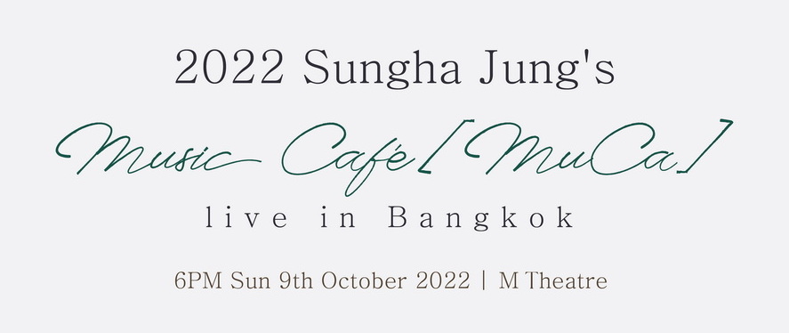 โอกาสนี้ ซองฮา ฝากคลิปมาทักทายทุกคนที่ประเทศไทยด้วยว่า “สวัสดีครับ กีตาร์ลิสต์แห่งมูคา หรือ จองซองฮา มิวสิก คาเฟ่ จองซองฮาครับ ที่ผ่านมาผมอยากเจอกับแฟนๆ ชาวไทยมาตลอด แต่ก็ยังไม่มีโอกาสได้เจอเพราะสถานการณ์โควิดครับ วันนี้ดีใจมากที่จะได้มาแจ้งข่าวดีให้กับทุกๆ คนกันครับ งาน Sungha Jung’s Music Café จะจัดขึ้นในวันที่ 9 เดือนตุลาคมที่จะถึงนี้ ณ M Theatre ประเทศไทยครับ ผมได้เตรียมทั้งเพลงจากอัลบั้มใหม่และเพลงที่จะแสดงในมูคาเป็นครั้งแรกเพื่องานนี้โดยเฉพาะ นอกจากนี้ยังได้เตรียมคัฟเวอร์ทั้งเพลงป็อปที่ทุกคนรู้จักกันดี รวมถึงเพลงไทยสำหรับแฟนๆ ชาวไทยด้วยครับ ฝากติดตามงาน Sungha Jung’s Music Café Live in Bangkok ด้วยนะครับ ในส่วนของรายละเอียดสามารถติดตามได้ทางออฟฟิเชียลเพจของ Jin Corporation และ Piccolo Music Entertainment ครับ หวังว่าทุกคนจะมากันเยอะๆ แล้วเจอกันที่คอนเสิร์ตนะครับ ขอบคุณครับ” ชมคลิปได้ทาง https://youtu.be/GA93jYH6c9c