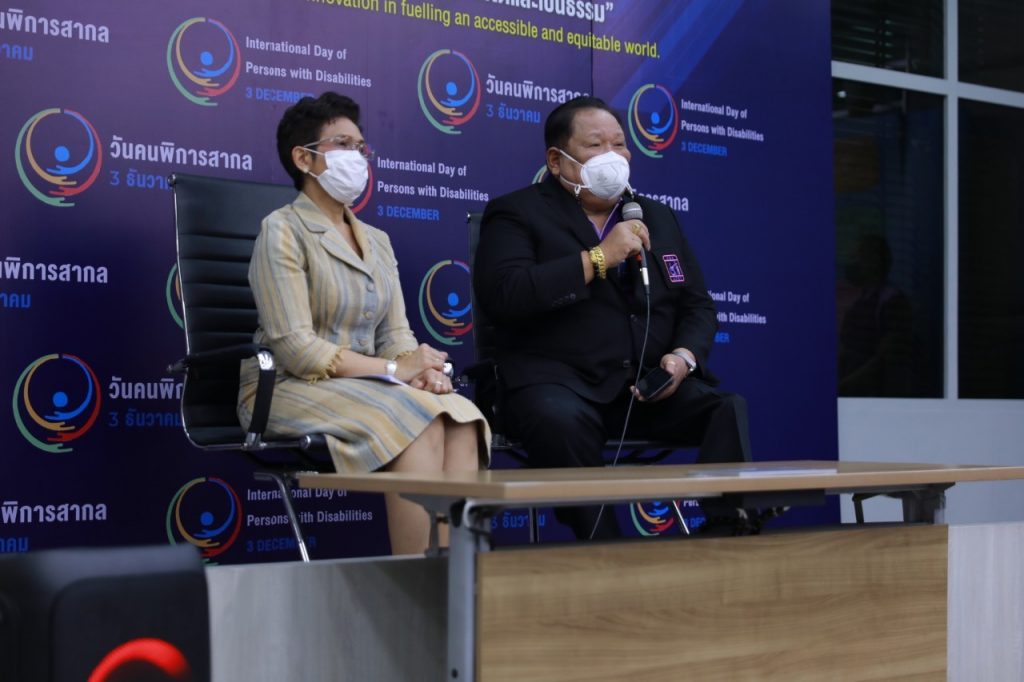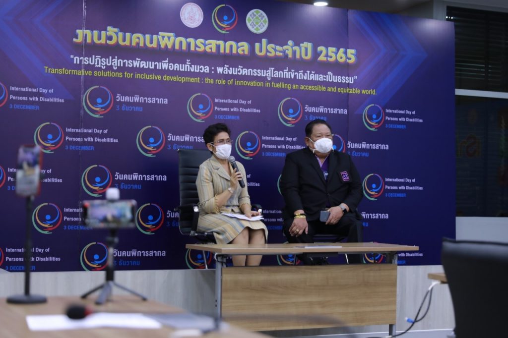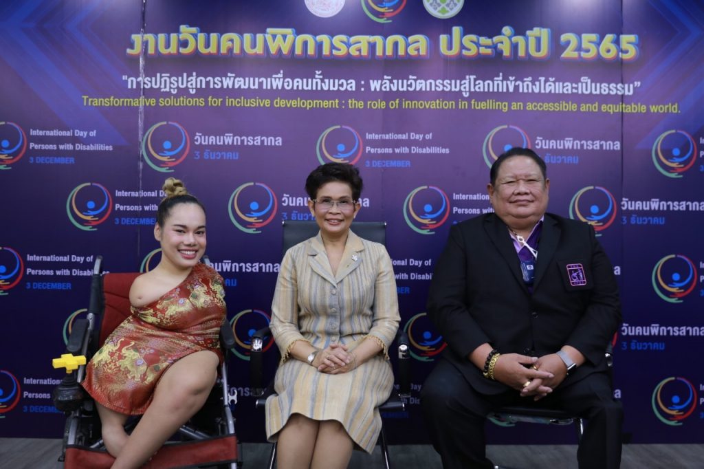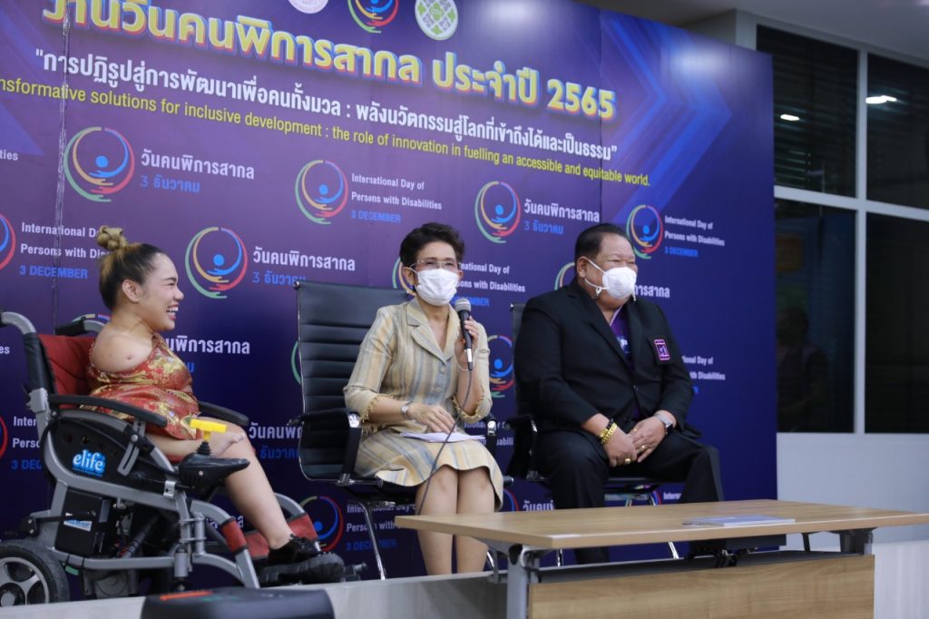28 พ.ย. 65 เวลา 10.00 น. ที่ห้องประชุม ชั้น 3 อาคาร 60 ปี บ้านราชวิถี กรุงเทพมหานคร นางสาวสราญภัทร อนุมัติราชกิจ อธิบดีกรมส่งเสริมและพัฒนาคุณภาพชีวิตคนพิการ ร่วมกับนายศุภชีพ ดิษเทศ นายกสมาคมสภาคนพิการคนพิการทุกประเภทแห่งประเทศไทย แถลงข่าวงานวันคนพิการสากล ประจำปี 2565 ภายใต้แนวคิด “ปฏิรูปสู่การพัฒนาเพื่อคนทั้งมวล : พลังนวัตกรรมสู่โลกที่เข้าถึงได้และเป็นธรรม โดยมี “ฝ้าย เท้าแต่งหน้า” บิวตี้บล็อคเกอร์ชื่อดัง และคนพิการต้นแบบ ร่วมเป็นแขกรับเชิญพิเศษ