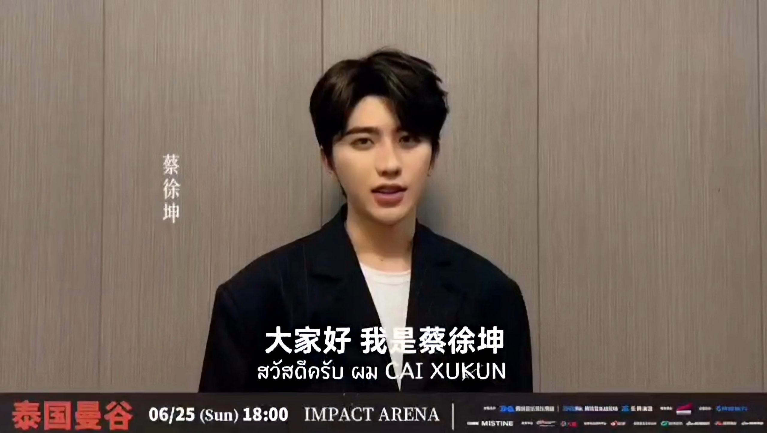 สวัสดีครับ ผม CAI XUKUN คอนเสิร์ต ‘KUN 2023「迷」 WORLD TOUR’ ของผมได้เริ่มแล้ว! และทัวร์ที่กรุงเทพฯ จะจัดขึ้นในวันที่ 25 มิถุนายน นี้ ที่ IMPACT ARENA หวังว่าจะได้พบและร่วมสนุกไปกับพวกคุณทุกคนที่นั่นนะครับ