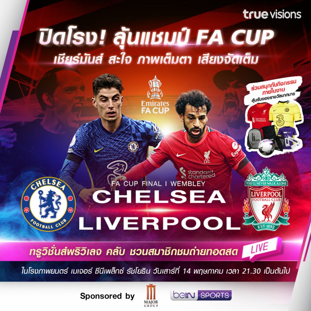 เมเจอร์ ซีนีเพล็กซ์ กรุ้ป ผนึก ทรูวิชั่นส์ ย้ำความเป็นผู้นำคอนเทนต์กีฬาระดับโลก ปิดโรงภาพยนตร์เอาใจแฟนบอลชาวไทย ถ่ายทอดสดศึกฟุตบอลถ้วยที่เก่าแก่ที่สุดในโลก เอฟเอ คัพ รอบชิงชนะเลิศ ไฮไลท์ที่แฟนบอลทั่วโลกจับตา เป็นการโคจรมาพบกันของสองทีมยักษ์ใหญ่แห่งวงการฟุตบอลอังกฤษระหว่าง “สิงโตน้ำเงินคราม” เชลซี กับ “หงส์แดง” ลิเวอร์พูล สดจาก สนามเวมบลีย์ กรุงลอนดอน ประเทศอังกฤษ สู่จอยักษ์ของโรงภาพยนตร์ขนาดใหญ่ ให้แฟนบอลได้ชมฟรีกันสด ๆ แบบเอ็กซ์คลูซีฟ ในโรงภาพยนตร์ที่ 13 เมเจอร์ ซีนีเพล็กซ์ รัชโยธิน คืนวันเสาร์ที่ 14 พฤษภาคมนี้ เวลา 21.30 น. เป็นต้นไป