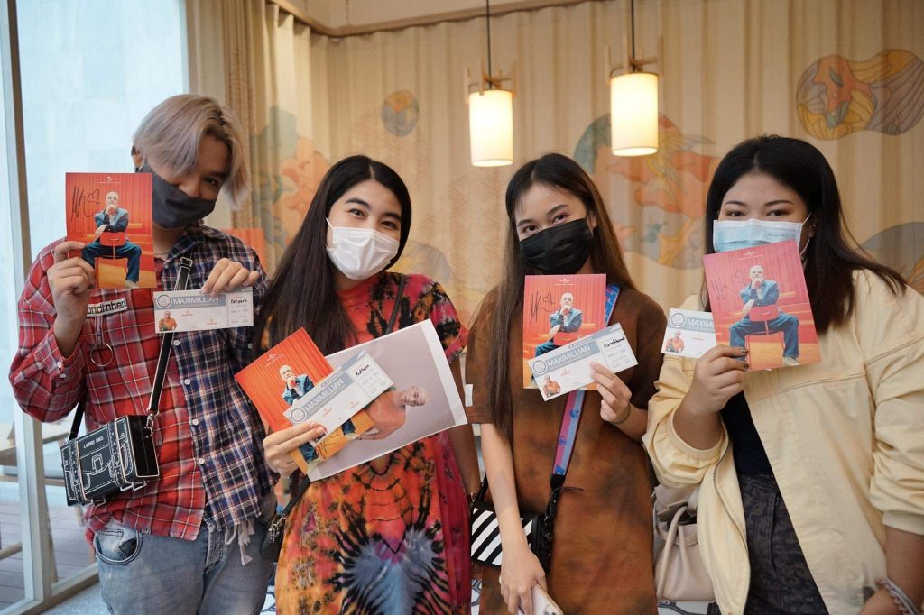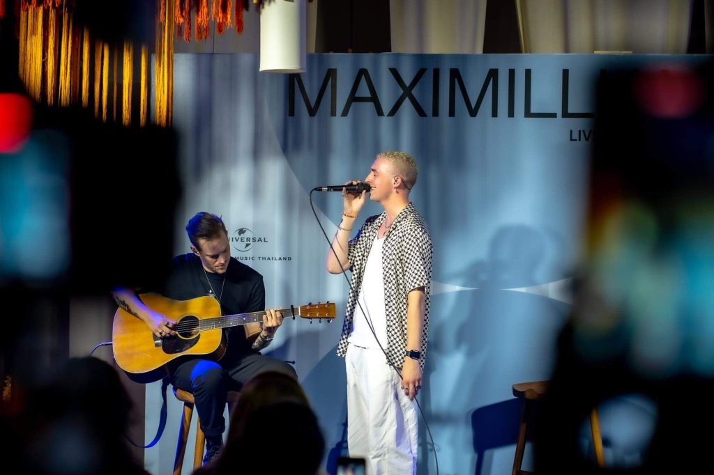 ไฮไลท์สำคัญของการเดินทางมาในครั้งนี้ “Maximillian” ได้จัด Exclusive Fan Meet และ Showcase ขึ้นเป็นครั้งแรกในประเทศไทยบริเวณ ชั้น 4 Courtyard โรงแรม ASAI Bangkok Chinatown โดยกิจกรรม “Maximillian Exclusive FanMeet” แคมเปญออนไลน์ที่ค่ายเพลง “ยูนิเวอร์ซัล มิวสิค (ประเทศไทย)” และคลื่นวิทยุสากล “EAZY FM 105.5” ร่วมกันจัดขึ้นเพื่อค้นหาแฟนพันธ์แท้ผู้โชคดีจำนวน 20 คน ได้มีโอกาสนำของฝากจากประเทศไทยมามอบให้กับ “Maximillian” เรียกได้ว่าสร้างความประทับใจ และอิ่มเอมใจในบรรยากาศเป็นกันเอง ตามมาด้วยกิจกรรม “Maximillian Exclusive Showcase” ที่กวาดต้อนศิลปิน เซเลป และแฟนเพลง “Maximillian” เข้าร่วมชม Showcase และให้กำลังใจกันเพียบ ไม่ว่ความสนุกในช่วง Showcase จัดเต็มสุด ๆ เมื่อ “Maximillian” ขนเพลงเพราะ ๆ มาร้อง และเล่นสดทั้งหมด 7 เพลงด้วยกัน ได้แก่เพลง Letters, Mirror, Ripples, Love Like This, On My Mind กอนจะเปิดโชว์บิ๊กเซอร์ไพรส์ให้แฟนเพลงด้วยการโชว์เพลงใหม่ “I’m Not Me” ร้องสด เล่นสด ให้ทุกคนได้ฟังก่อนใคร โดยเพลงนี้มีกำหนดปล่อยในวันศุกร์ที่ 12 สิงหาคมที่จะถึงนี้ ก่อนจะปิดท้ายด้วยเพลง “Beautiful Scars” เพลงฮิต Viral กวาดยอดวิวกว่า 62 ล้านวิว และทำให้ชื่อของ “Maximillian” เป็นที่รู้จักในชั่วข้ามคืน เรียกได้ว่าเดินทางมาประเทศไทยทั้งที ขอจัดเต็มให้แฟนเพลงทุกคนได้หายคิดถึง…..าจะเป็นศิลปินดัง ลูกหว้า พิจิกา นักแต่งเพลงชื่อดัง แอ้ม อัจริยา ดุลยไพบูลย์ และ ส้ม มารี ที่หนุ่ม “Maximillian” ได้ถือโอกาสกล่าวขอบคุณ และมอบช่อดอกไม้ให้กับส้ม ที่มีโอกาสได้เจอกัน และร่วมงานกันเป็นครั้งแรก