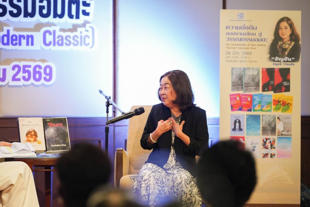 ผ่านพ้นไปอย่างอบอุ่นสำหรับงานเสวนาทางวรรณกรรม “ความยั่งยืนของงานเขียน สู่วรรณกรรมอมตะร่วมสมัย (Modern Classic)” ซึ่งจัดขึ้นเมื่อวันที่ 26 มีนาคม 2569 ณ โรงแรมซีนิท สุขุมวิท กรุงเทพฯ โดยได้รับความสนใจจากสื่อมวลชน นักวิชาการ ตลอดจนผู้อ่านและแฟนหนังสือเข้าร่วมงานอย่างคับคั่ง สะท้อนพลังและความมีชีวิตชีวาของแวดวงวรรณกรรมไทยในปัจจุบัน หนึ่งในช่วงเวลาที่สร้างความประทับใจให้กับผู้เข้าร่วมงาน คือการปรากฏตัวของนักเขียนรางวัลซีไรต์ อัญชัน หรือ อัญชลี วิวัธนชัย ซึ่งเดินทางไกลมาจากประเทศสหรัฐอเมริกากว่า 20 ชั่วโมง ท่ามกลางสถานการณ์ความไม่สงบในหลายพื้นที่ของโลกในช่วงเวลานี้ แต่ยังคงมาพร้อมรอยยิ้มและความตั้งใจเต็มเปี่ยม เพื่อร่วมเปิดตัวผลงานใหม่และพบปะผู้อ่านชาวไทยอย่างใกล้ชิด สร้างบรรยากาศอบอุ่นและเป็นกันเองตลอดทั้งงาน