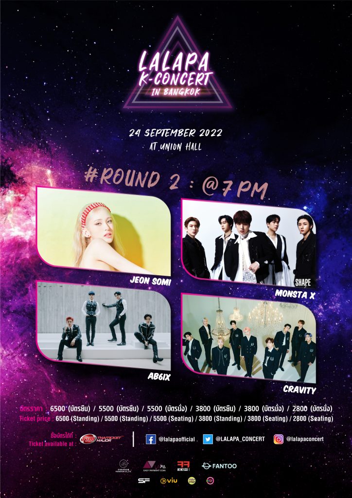 “MONSTA X”  ชวน “มอนเบเบ้” (MONBEBE) ชาวไทย มาร่วมสนุกและมาพบกันอย่างใกล้ชิดกันในงาน “LALAPA K-CONCERT IN BANGKOK 2022” ที่จะจัดขึ้นในวันเสาร์ที่24 กันยายน 2565 ณ ยูเนี่ยน ฮอลล์ ศูนย์การค้ายูเนี่ยน มอลล์ เพราะจะเป็นงานสุดท้ายของปีนี้ในโซนเอเชียแล้วที่พวกเขาจะได้พบกับแฟนๆ ทั้งชาวไทยและชาวเอเชียทุกคน นอกจากนั้นยังมีศิลปินอีกกว่า 40 ชีวิตเข้าร่วมสร้างความสุข สนุกสนานภายในงานนี้ให้แฟนๆ เคป็อปชาวไทยอีกคับคั่ง ไม่ว่าจะเป็น B.I, ASTRO, AB6IX, JEON SOMI, WJSN, CRAVITY และ DRIPPIN