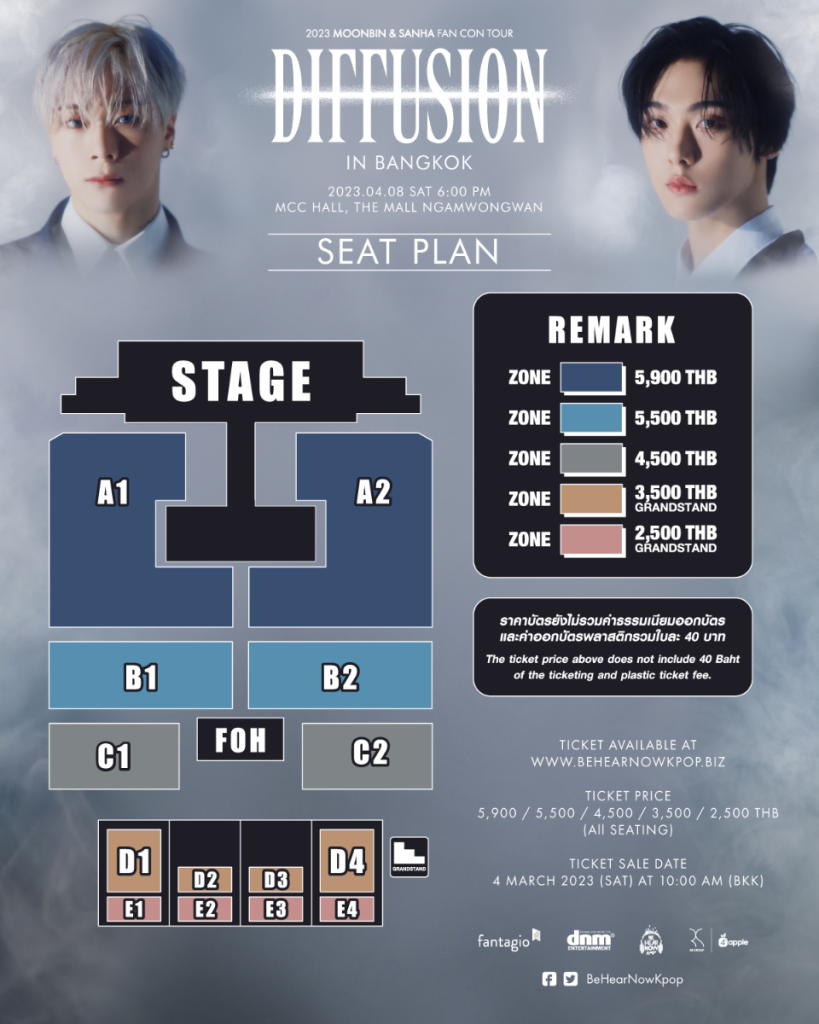 ย้ำกันอีกครั้ง 2023 MOONBIN&SANHA(ASTRO) FAN CON : [DIFFUSION] in BANGKOK จะมีขึ้นในวันเสาร์ที่ 8 เมษายน 2566 ณ MCC HALL เดอะมอลล์ งามวงศ์วาน อะโรฮ่า เตรียมตัวให้พร้อม บัตรจะเปิดจำหน่ายในเสาร์ที่ 4 มีนาคม 2566 ทาง www.behearnowkpop.biz บัตรราคา 5,900 / 5,500 / 4,500 / 3,500 และ 2,500 บาท พร้อมสิทธิพิเศษมากมายที่เหล่าอะโรฮ่าพลาดไม่ได้ และผู้ซื้อบัตรทุกราคาจะได้รับ INDIVIDUAL PHOTOCARD และ OFFICIAL POSTER รู้แบบนี้แล้ว อะโรฮ่าทั้งหลายอย่าลืมกดติดตาม เพื่ออัปเดตความเคลื่อนไหวได้ทาง: WWW.FACEBOOK.COM/BEHEARNOWKPOP | TWITTER : @behearnowkpop