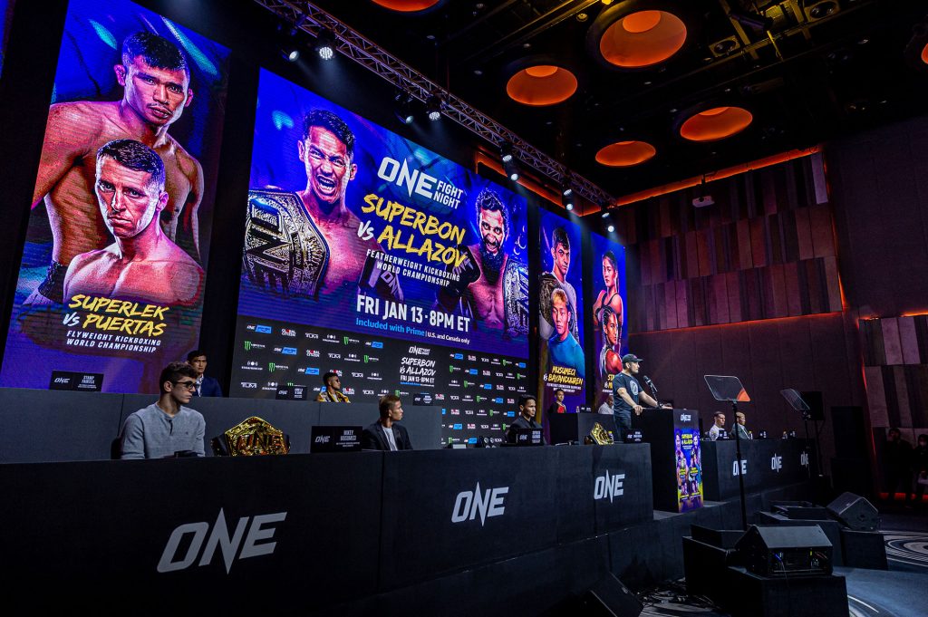 ส่วนศึก ONE FIGHT NIGHT 6 ในวันเสาร์ที่ 14 ม.ค. 66 ที่อิมแพ็ค อารีนา เมืองทองธานี คู่เอกของรายการเป็นการปะทะกันระหว่างนักมวยระดับซูเปอร์สตาร์ชาวไทย “ซุปเปอร์บอน สิงห์มาวิน” แชมป์โลก ONE คิกบ็อกซิ่ง รุ่นเฟเธอร์เวต (155 ป.) ที่จะป้องกันตำแหน่งกับผู้ท้าชิง “ชิงกิซ อัลลาซอฟ” เจ้าของแชมป์ ONE คิกบ็อกซิ่ง เวิลด์ กรังด์ปรีซ์
