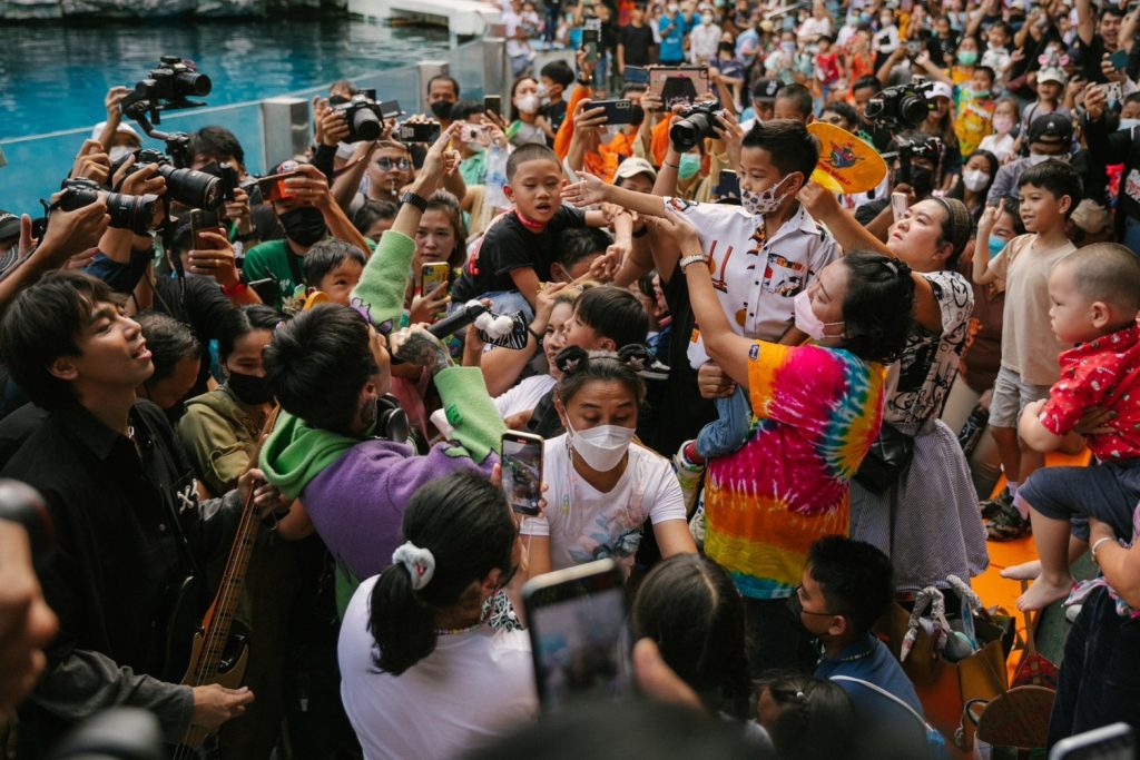 “พวกเรารู้สึกว่าซาฟารีเวิลด์เป็นที่แรกที่ทำให้เราได้เห็นคลิปและได้รู้จักกับน้องๆ เราเลยคิดว่าวันเด็กนี้เป็นโอกาสที่ดีที่จะได้เจอกับน้องๆ เลยขอทางทีมงานติดต่อทางซาฟารีเวิลด์เพื่อมาเจอกับน้องๆ แบบจริงๆ และพวกเราอยากขอบคุณคุณพ่อคุณแม่ของน้องๆ ที่ให้พวกเราได้เป็นส่วนหนึ่งที่ช่วยดูแลกัน เราอาจจะถูกเรียกว่าเป็นหัวหน้าแก๊ง แต่ผมคิดเสมอว่าตัวเองเป็นพี่ๆ ของน้องๆ ผมเองก็ยังไม่ได้อยู่ในวัยที่ทุกอย่างถูกต้อง ยังมีผิดบ้างและดีบ้าง แต่ผมเชื่อว่าพวกเราและผู้ปกครองจะร่วมมือกันพาน้องๆ ไปอยู่ในจุดที่สมเหตุสมผลและอยู่ในจุดที่ดีที่สุด ขอบคุณคุณพ่อคุณแม่ที่ซัพพอร์ตพวกเราและสร้างมาตรฐานใหม่การไม่ตัดสินคนจากภายนอก”