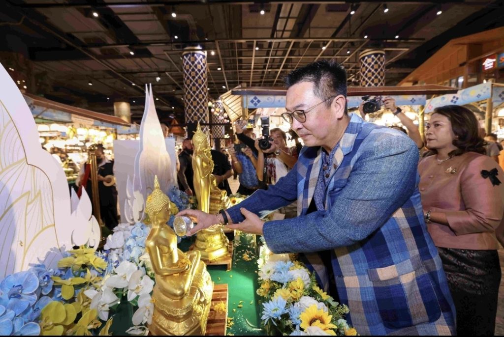 กราบสักการะสรงน้ำ หลวงพ่อเงิน พระพุทธรูปศักด์สิทธิ์ อายุกว่า 700 ปี เมืองสุขสยาม ณ ไอคอนสยาม ได้ประกอบพิธีอัญเชิญหลวงพ่อเงินเพื่อถวายน้ำสรงจัดขึ้นในงานบุญเดือน ๕ เป็นจารีตประเพณีดั้งเดิมของโบราณอีสาน อันบ่งชี้ถึงความบรรจงวิจิตรแห่งศรัทธาในพระพุทธศาสนาของท้องถิ่น “หลวงพ่อเงิน” เป็นพระพุทธรูปเงิน ปางมารวิชัย ศิลปะเชียงแสนล้านช้าง พระพุทธรูปศักดิ์สิทธิ์โบราณ คู่บ้านคู่เมือง อายุกว่า 700 ปี ที่ได้รับการยกย่องว่าเป็น “พระชัยหลังช้างแห่งแผ่นดินอีสาน” ในการสถาปนา เมืองอุบลราชธานี ศรีวนาลัย ประเทศราช จากวัดปากน้ำ (บุ่งสระพัง) จังหวัดอุบลราชธานี มาสู่เมืองสุขสยาม พร้อมได้จัดให้มีการจัดขบวนแห่รอบเมืองสุขสยาม เพื่อเป็นสิริมงคลแก่ร้านค้าพันธมิตรและนักท่องเที่ยวโดยรอบ ก่อนอัญเชิญ “หลวงพ่อเงิน” ขึ้นประดิษฐาน ณ ประตูสุขสุวรรณศาลา เมืองสุขสยาม ณ ไอคอนสยาม ชั้น G เพื่อให้ประชาชนและนักท่องเที่ยวได้ร่วมสรงน้ำถวายหลวงพ่อเงิน น้อมสักการะขอพร เสริมความเป็นสิริมงคลต้อนรับเทศกาลปีใหม่ไทย รวมถึงสรงน้ำขอพร พระอุปคุต และพระประจำวันเกิด ตั้งแต่วันที่ 8 – 15 เมษายน 2569