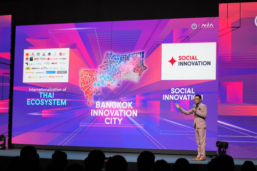 เราต้องการให้เห็นภาพที่ชัดขึ้นว่าภาครัฐ หน่วยงานราชการจะมาเป็นผู้ช่วย ผู้ใช้ และผู้สร้างนวัตกรรมอย่างไร และเราจะได้เห็นว่าจักรวาลการเติบโตของ STARTUP THAILAND UNIVERSE ที่ขยายใหญ่ขึ้น เราเดินทางมาถึงการปฏิรูปเศรษฐกิจหลังการพัฒนาอุตสาหกรรมการผลิต เข้าสู่ยุคที่ต้องพูดถึงประเด็นสิ่งแวดล้อม และประเด็นเรื่องสังคมที่มีความคาดหวังจากประชาชน เกิดความต้องการ “ความเปลี่ยนแปลง (CHANGE) ” จากผู้คนในสังคม ดังนั้น NIA ต้องการทำให้ทุกคนสามารถก้าวเดินไปพร้อมกันในรูปแบบความปกติใหม่ สิ่งที่เปลี่ยนแปลงจึงไม่ใช่โครงสร้างพื้นฐานที่จับต้องได้ แต่มันคือการเปลี่ยนแปลง “Mindset” วิธีคิดวิธีมองนวัตกรรมที่ไม่เหมือนเดิม โดยอาศัยทรัพยากรและความร่วมมือจากทุกภาคส่วน