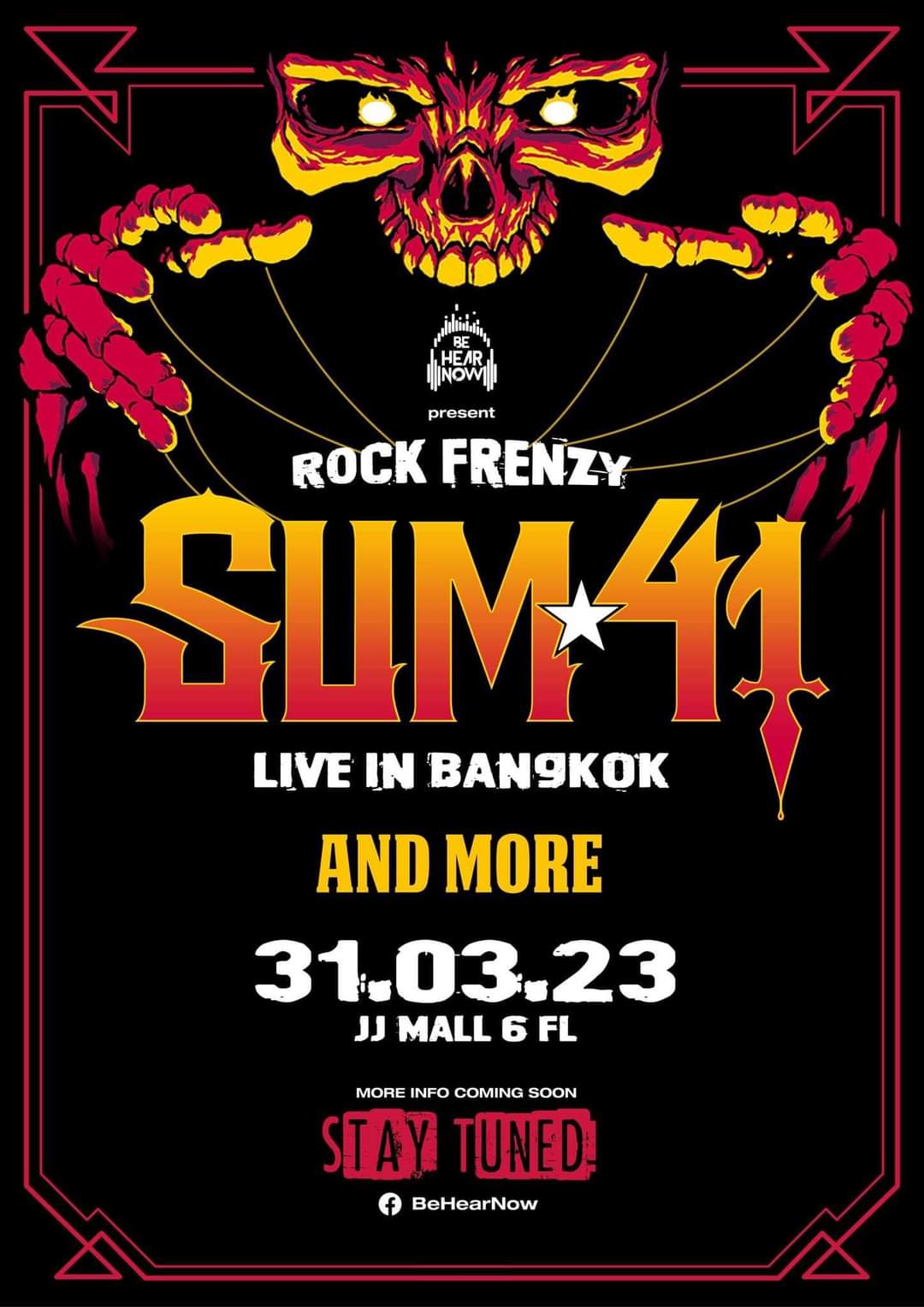 Get ready to rock like never before with 𝐁𝐞 𝐇𝐞𝐚𝐫 𝐍𝐨𝐰 𝐏𝐫𝐞𝐬𝐞𝐧𝐭 𝐑𝐨𝐜𝐤 𝐅𝐫𝐞𝐧𝐳𝐲 𝐋𝐢𝐯𝐞 𝐢𝐧 𝐁𝐚𝐧𝐠𝐤𝐨𝐤 𝟐𝟎𝟐𝟑This is the festival you don’t want to miss, especially with the legendary pop-punk band 𝐒𝐮𝐦 𝟒𝟏taking the stage to bring the heat with hit songs like ‘Fat Lip’ and ‘Still Waiting’. The weather may be hot in March, but the real fire will be on the stage! 🎸