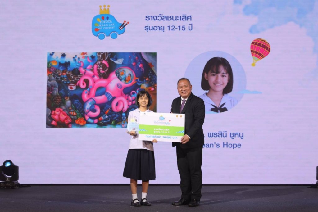 นายศุภกร กล่าวต่อไปว่า “ตลอดระยะเวลาการดำเนินงานของโครงการ มีผู้ส่งผลงานเข้าร่วมการประกวดมากกว่า 4,000 ผลงาน จากน้องๆ ผู้เข้าประกวดทั่วประเทศ ซึ่งเราได้เห็นความตั้งใจ ความคิดสร้างสรรค์ และจินตนาการ ผ่านผลงานการประกวดในครั้งนี้อย่างมากมาย โดยการประกวดในครั้งนี้ เราได้คัดเลือกตัวแทนทั้งหมด 9 คน เพื่อผ่านเข้ารอบสุดท้าย โดยแบ่งกลุ่มของผู้เข้าประกวดออกเป็น 3 กลุ่มด้วยกันคือ รุ่นระดับอายุไม่เกิน 7 ปี รุ่นระดับอายุ 8 – 11 ปี และรุ่นระดับอายุ 12-15 ปี น้องๆ ทั้ง 9 คนนี้ยังได้รับโอกาสในการส่งผลงานเข้าร่วมการประกวด TOYOTA Dream Car Art Contest 2023 ที่ประเทศญี่ปุ่นอีกด้วย ซึ่งผมหวังว่าผลงานจากฝีมือของเด็กไทยในปีนี้ จะมีโอกาสคว้ารางวัลจากเวทีการประกวดระดับโลกได้อีกครั้ง”