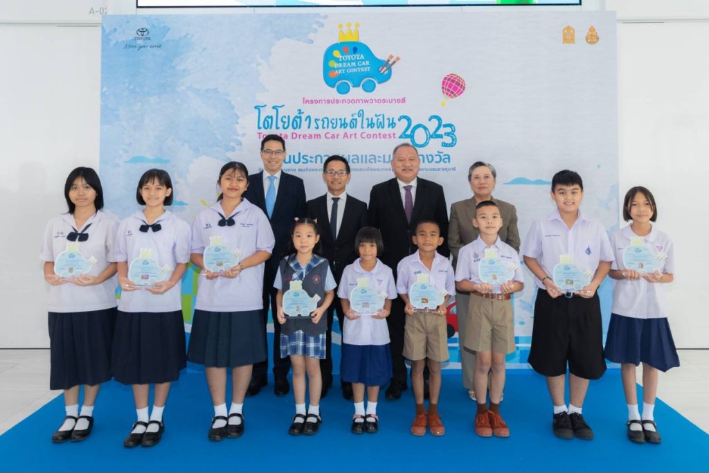 นายศุภกร รัตนวราหะ รองกรรมการผู้จัดการใหญ่ บริษัท โตโยต้า มอเตอร์ ประเทศไทย จำกัด และ นายยศพล เวณุโกเศศ รองปลัดกระทรวงศึกษาธิการร่วมมอบรางวัลผู้ชนะการประกวดภาพวาดระบายสีโครงการ “โตโยต้ารถยนต์ในฝัน””TOYOTA Dream Car Art Contest 2023” เมื่อวันที่ 15 มิถุนายน ศกนี้ ณ TOYOTA ALIVE ถ.บางนา-ตราด กม. 3